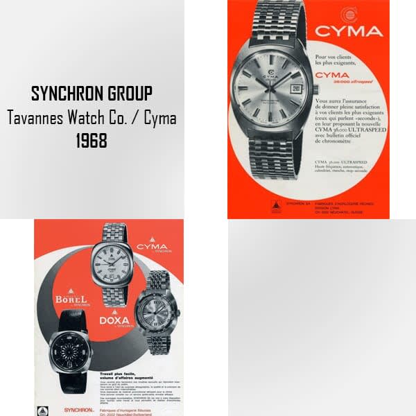 In 1966, ASUAG (today SWATCH GROUP) created Chronos Holding to manage new acquisiti ons,including the Tavannes Watch Co. and its underbrand Cyma. Chronos, in turn, created Synchron Group in 1968.