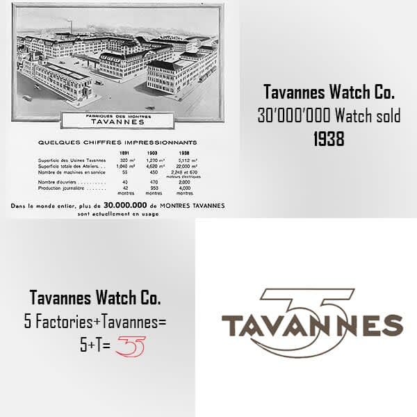 Tavannes Watch Co won the Grand Prix for daily production at the Exhibition Universal of Brussels: 2,500 watches per day. The numbers are there, revealing the tremendous industrial take-off of theTavannes Watch Co.