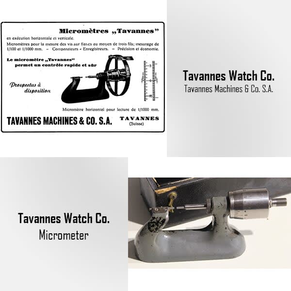 Since 1909, Tavannes Watch Co workshops have also produced the measuring instruments necessary for this activity, micrometers, including foot micrometers, for watchmaking and mechanics.