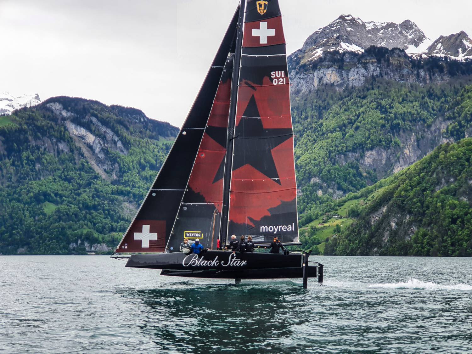 Black Star Sailing Team has temporarily left its home port of Brunnen / SZ to go to Lagos in Portugal to challenge opponents such as Alinghi or Red Bull Sailing Team, in a competition where the “flying” catamarans GC32, l one of the fastest one-designs in the world, compete in very high level regattas.
