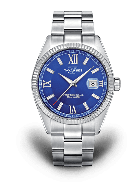The elegant look and quality of a Tavannes watch! The Fluted Edge Gents collection is elegant and sport oriented and has been engineered with 200m water resistance.